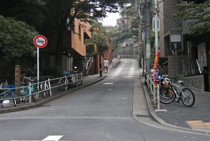 まだ坂道ビギナーだった頃に、魅了された名坂の1つです。この坂道はその名の通り、江戸時代には樹木が鬱蒼と生い茂り、左右は崖となっていることから昼間でも日が当たらないような坂だったことから命名されています。現在は高級マンションが隣接をしていますが、道幅の狭さ、湾曲具合など当時の面影を少なからず現在に残しています。