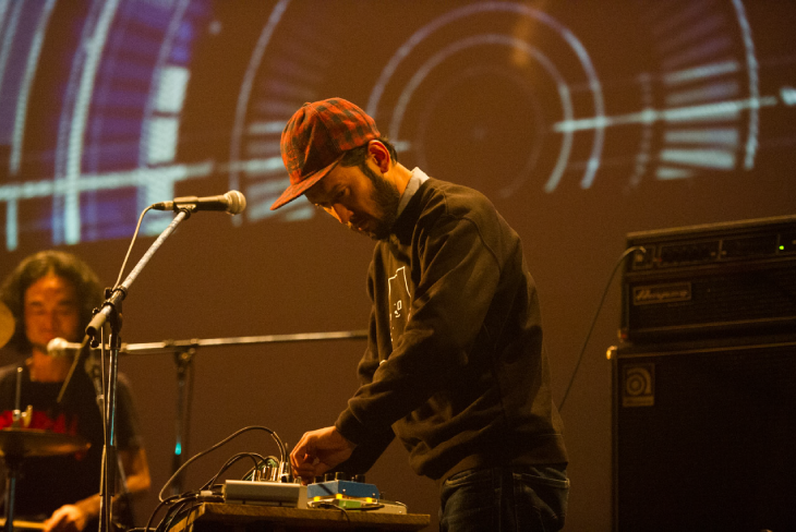 自分的には、音楽ジャンルという壁すらも軽々と乗り越える、類い稀なグルーヴを産み出すバンド<cro-magnon>のライブパフォーマンスが生で見たくて、原稿執筆中の手を止め雨が降りしきる中、ビール片手に友人と会場まで歩いたんですが…到着すると、エントランスから長蛇の列で、会場内は既に熱気で溢れ返っていました。到着間もなく<cro-magnon>のライブ演奏というタイミングでの入場でしたが、新旧の楽曲を流れるような構成で織り交ぜた、期待以上のライブパフォーマンスに舌鼓を打たせて頂きました。